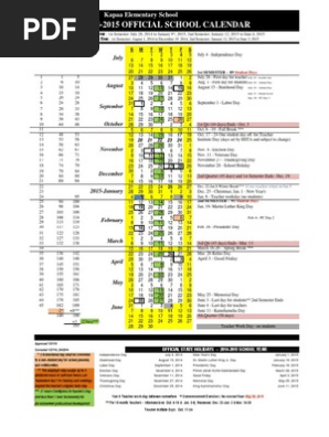 2014 2015 Official School Calendar Kapaa Elementary School Academic Term Observances