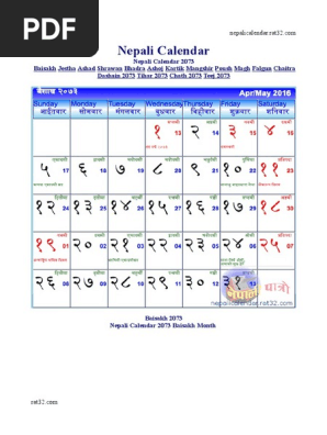 Nepali Calendar 2073 Bs Pdf Nepal Lunisolar Calendars