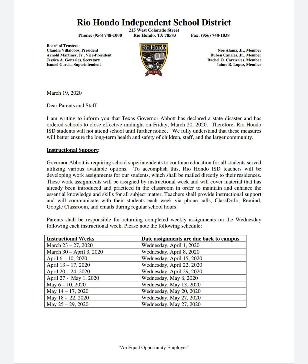 Rio Hondo High School Ptech On Twitter Important News From Our Superintendent Ismael Garcia Covid19 Weareriohondo