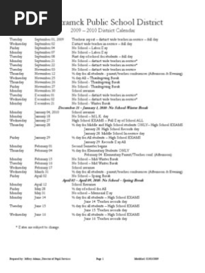 Hamtramck Public School District 2009 2010 District Calendar Academic Term Educational Institutions