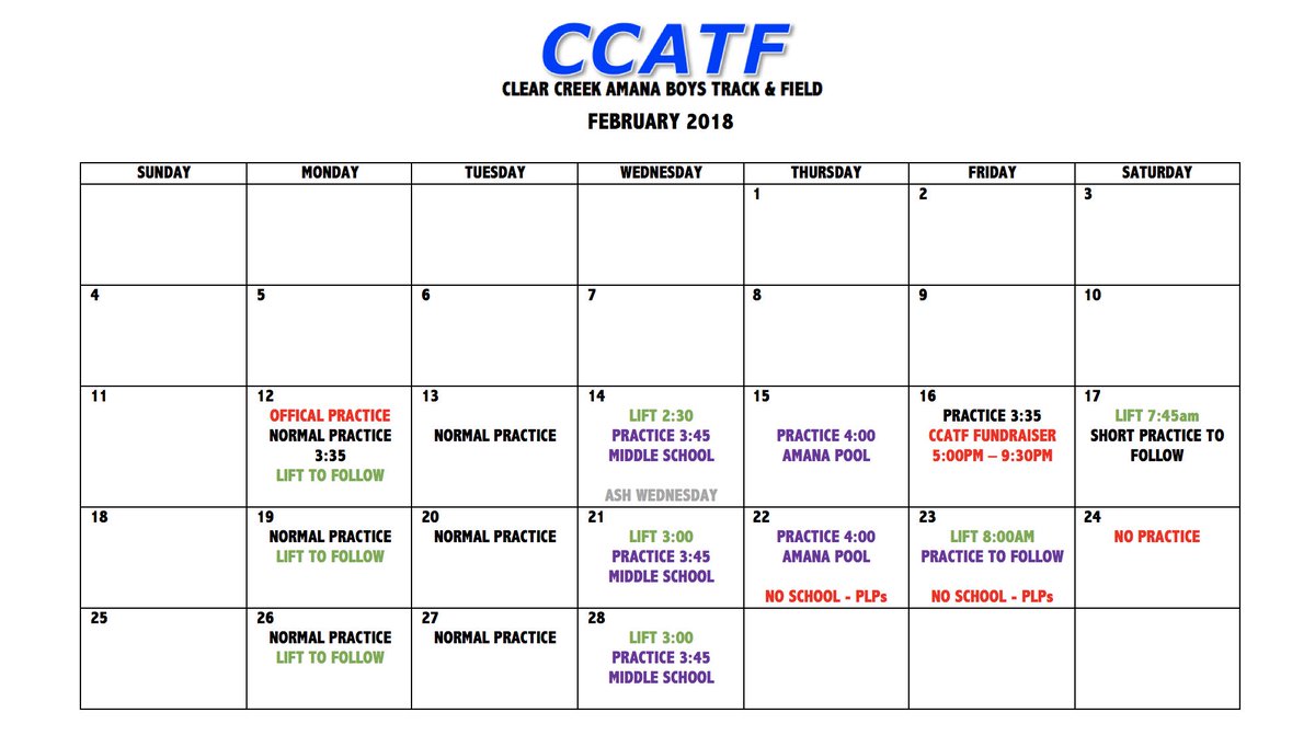 Ccatf Ccaxc On Twitter Minor Changes To The February Ccatf Practice Calendar Only To Week 1
