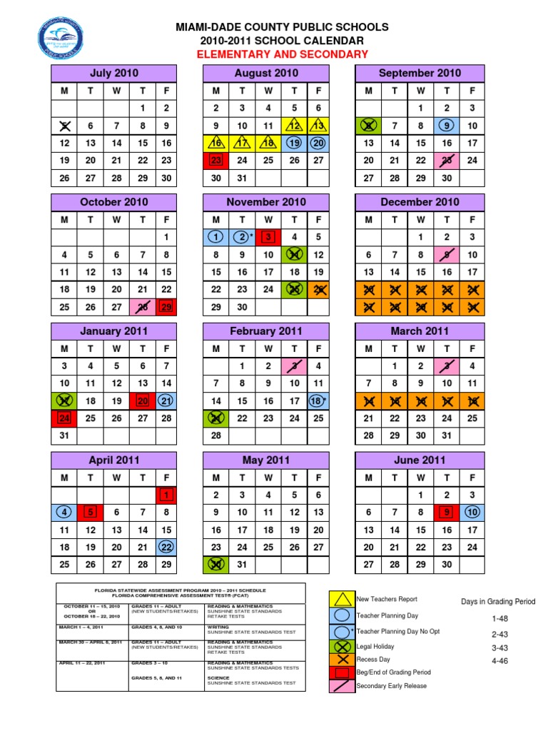 2010 2011 Dade Schools Calendar Academic Term Schools