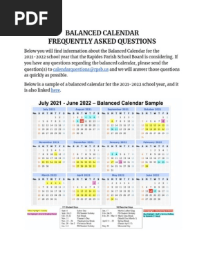 KALB - The final Balanced Calendar community meeting was held on Thursday January 14th. RAPIDES PARISH SCHOOL BOARD POLICIES HANDBOOK AND STUDENT CODE OF CONDUCT Attendance Discipline Student Rights and Responsibilities Substance Abuse School Calendar Transfers Rapides Parish School Board Sixth and Beauregard Streets Post Office Box 1230 Alexandria Louisiana 71309 Dr. 2 2021 meeting would change the structure of the school calendar people have known for years.