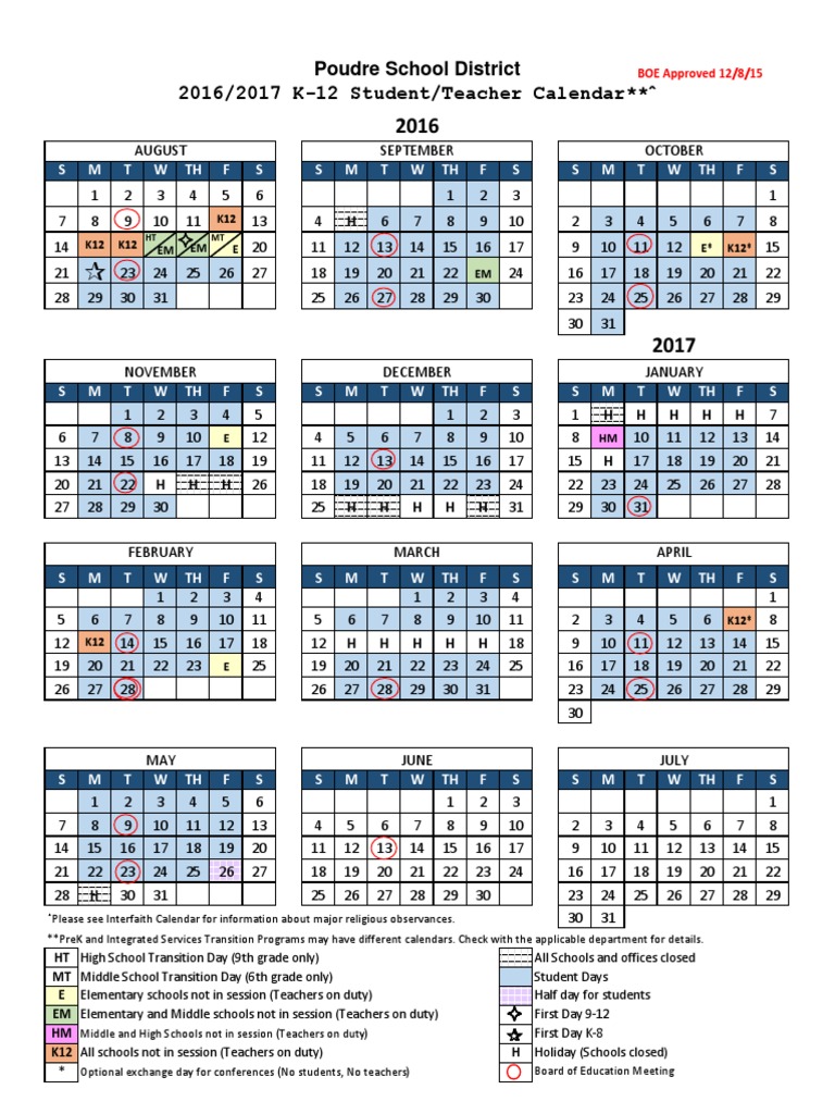 Psd 2016 17 Calendar Middle Schools Educational Organizations